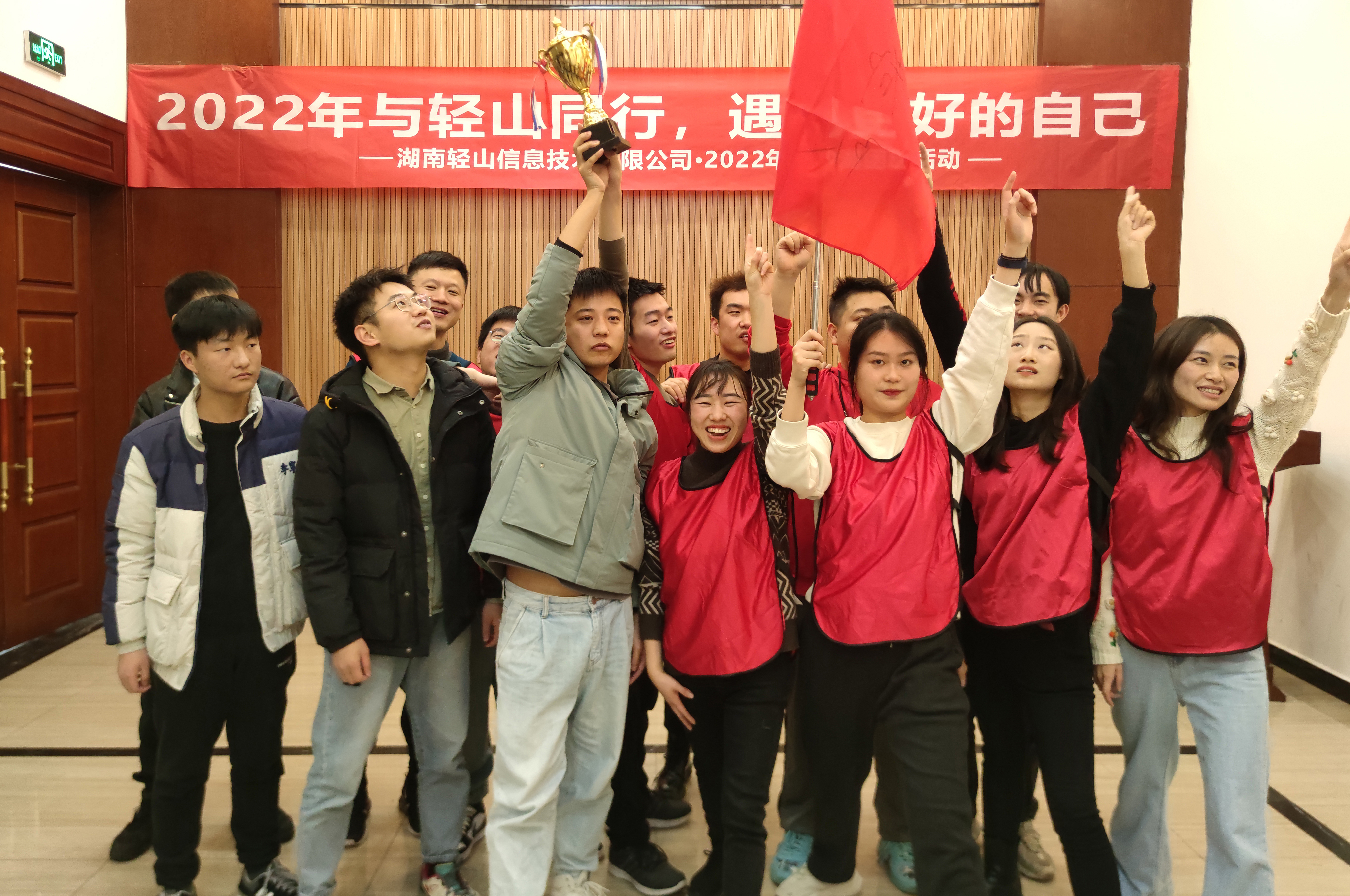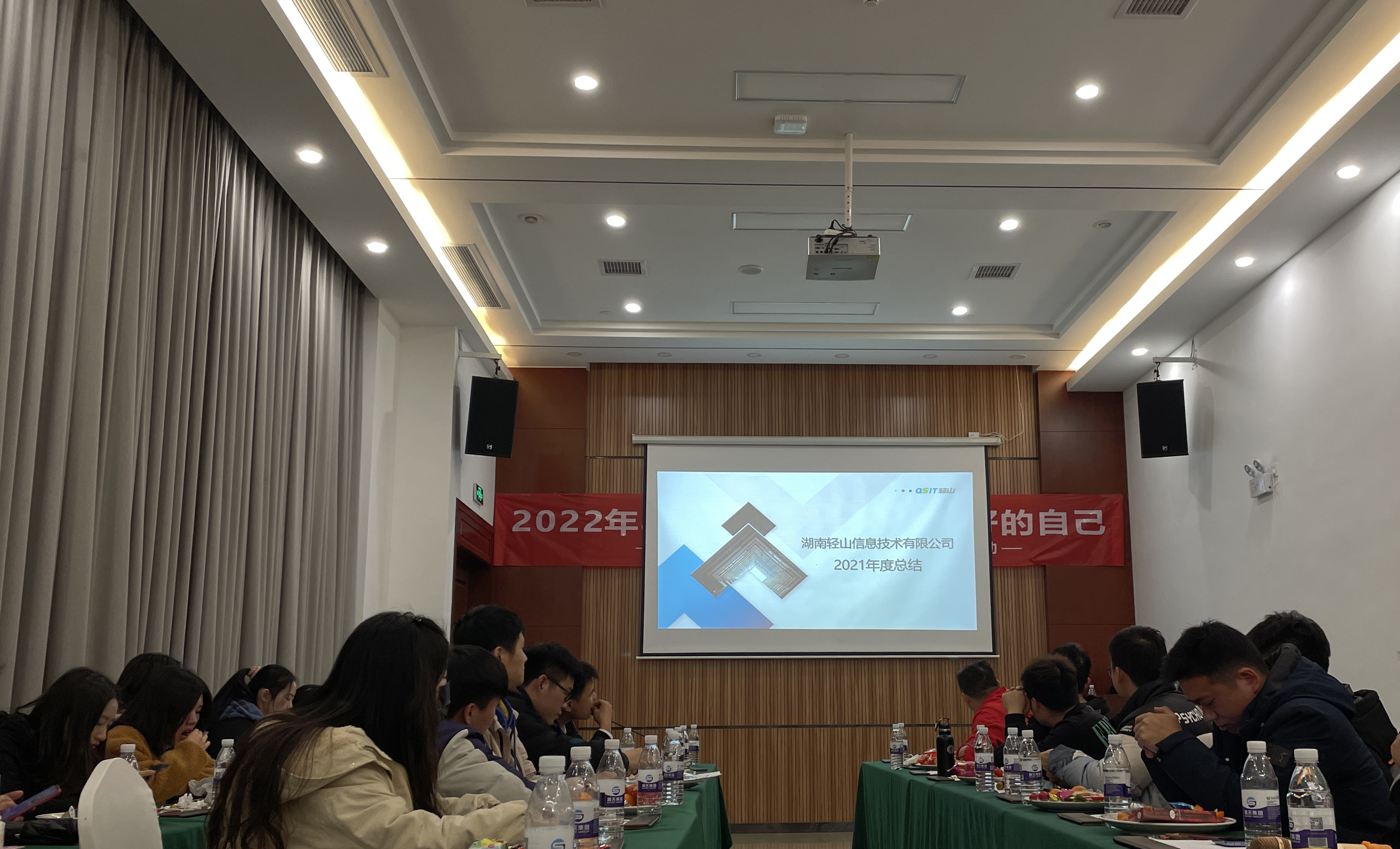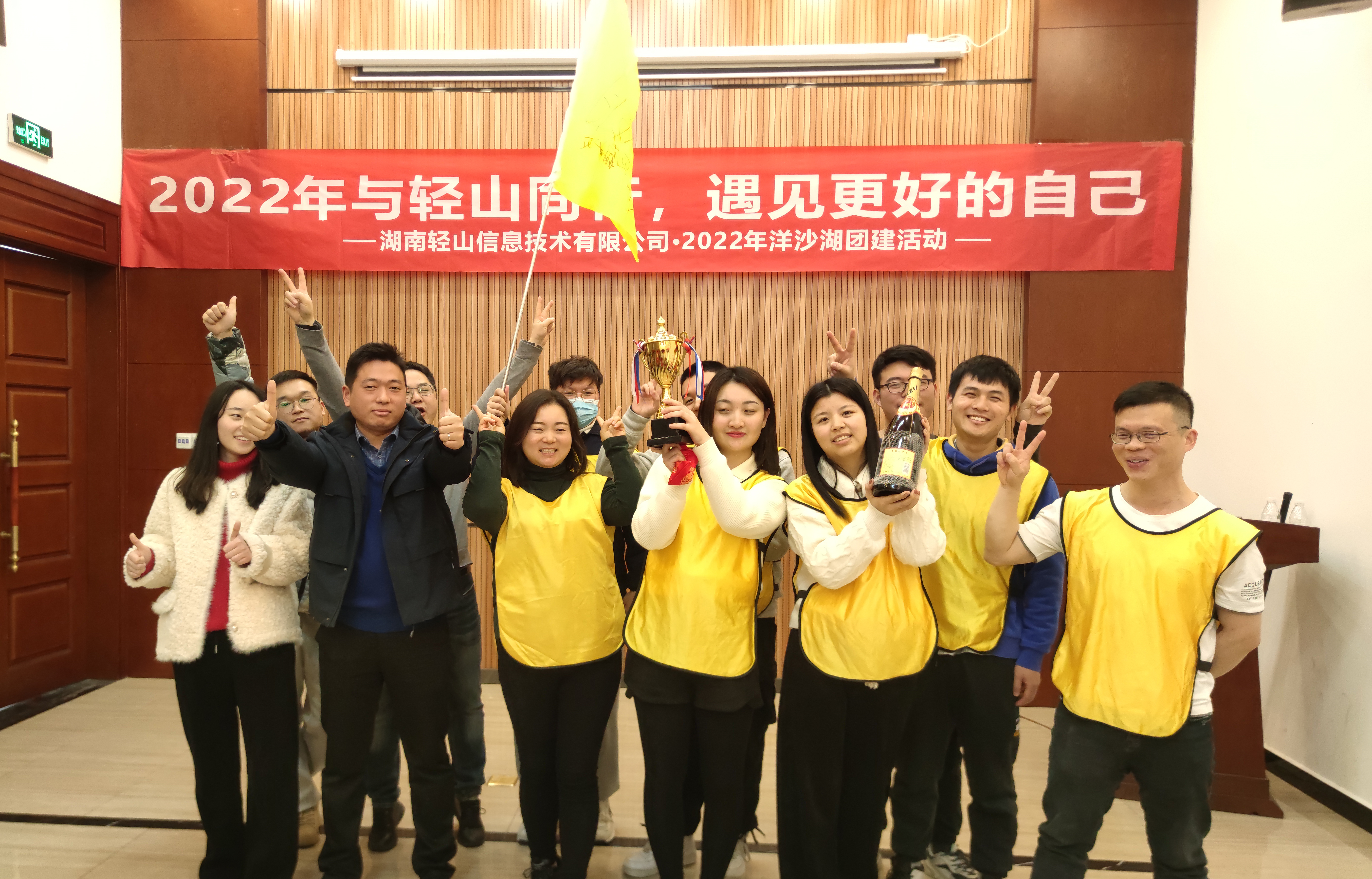 2022年01月湖南轻山信息技术有限公司于洋沙湖国际旅游度假区开展本年度的团建活动暨年终总结会议。
